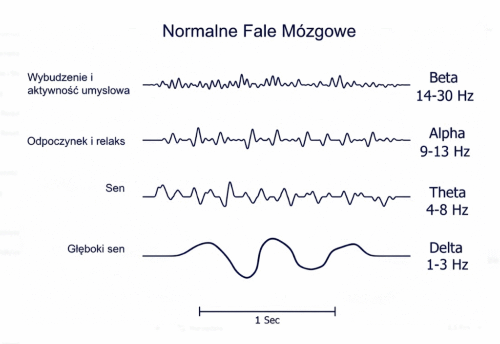 Twój mózg to sieć miliardów neuronów, które komunikują się ze sobą za pomocą impulsów elektrycznych. Ta nieustanna aktywność elektryczna tworzy rytmiczne wzorce, czyli właśnie fale mózgowe. Można je zmierzyć za pomocą badania EEG (elektroencefalografu). Wyobraź sobie, że fale mózgowe to różne „stacje radiowe”, na które Twój mózg może się nastroić. Każda stacja ma inną częstotliwość i inną „audycję” jedna nadaje wiadomości i wymaga skupienia, inna gra spokojną muzykę idealną do relaksu. To, na jakiej stacji nadaje Twój mózg, bezpośrednio wpływa na Twoje samopoczucie.